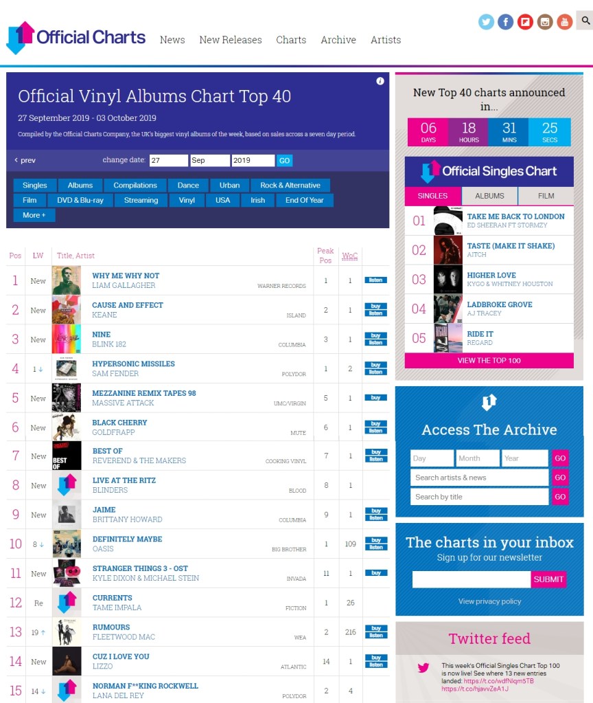 Official Vinyl charts for 27.09.2019