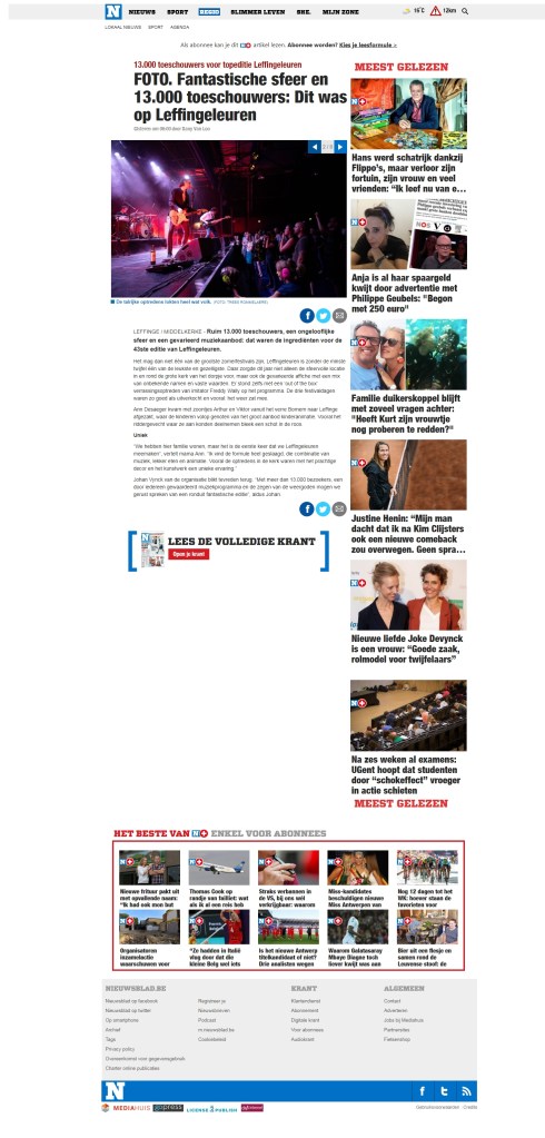 Het Nieuwsblad_Monday_15.09.2019 Daily newspaper “Het Nieuwsblad ” publishing an article on Monday 15.09.2019 with picture of The Blinders taken by Trees Rommelaere