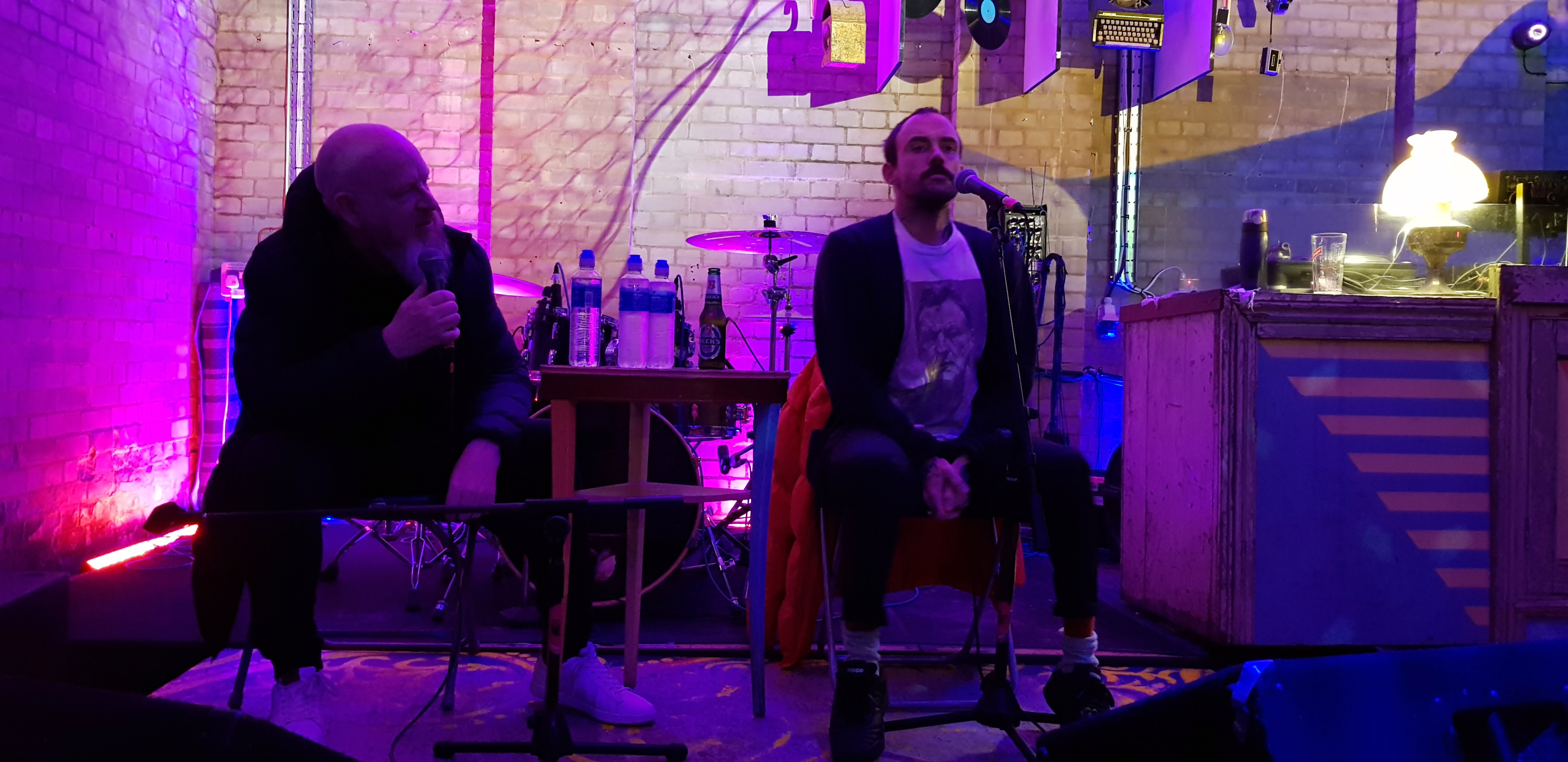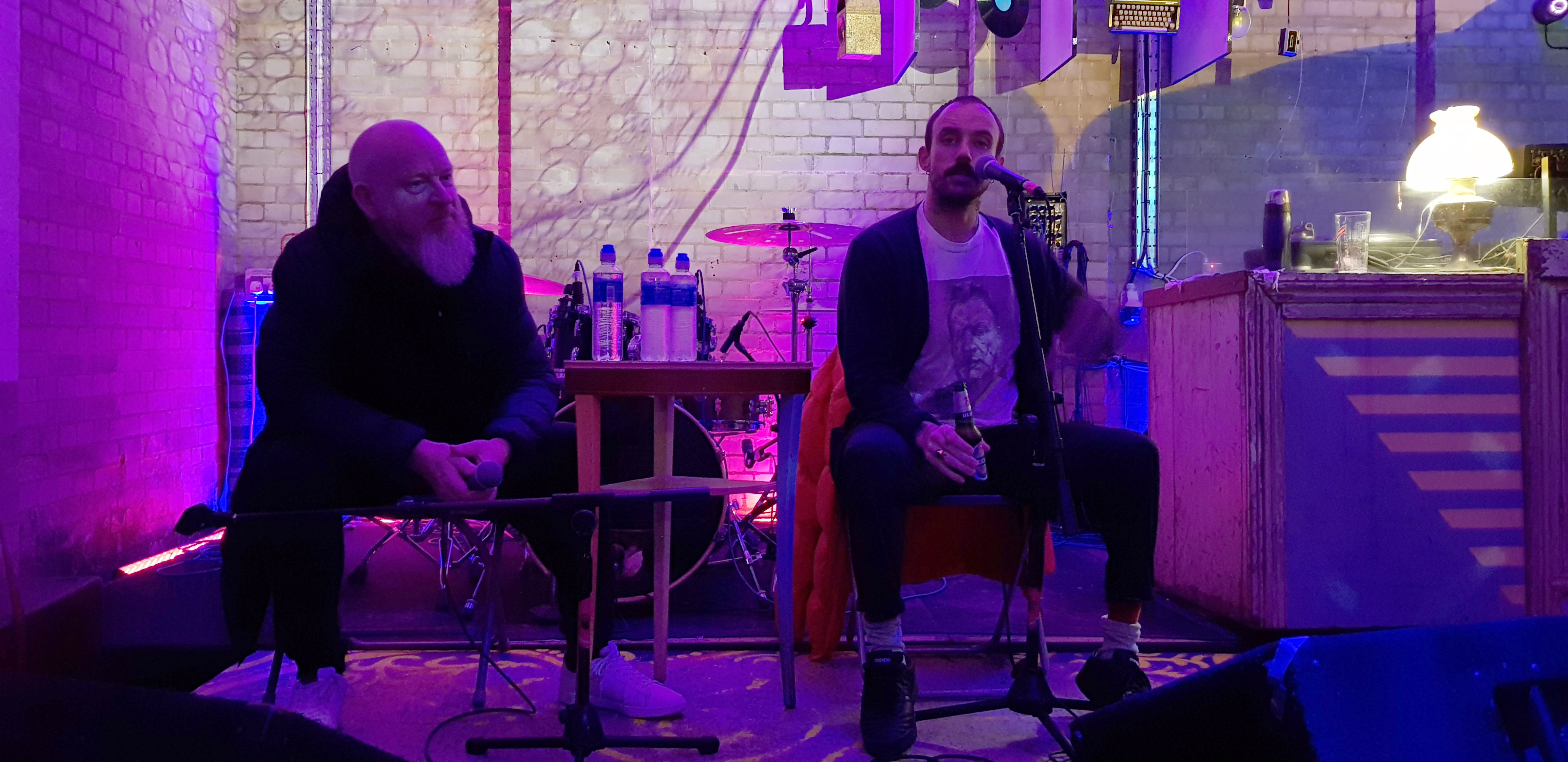 Once the music stopped – chairs were brought on the stage, lights dimmed and Alan McGee and Joe Talbot entered the room.